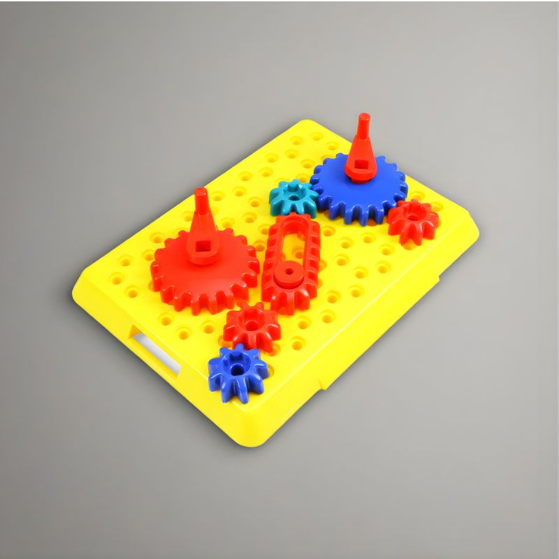 The OK Play Magic Gears – Plastic Base with Small & Large Gears is a hands-on mechanical toy that introduces young children to gear mechanisms and cause-effect relationships. It comes with a base and multiple rings/gears of varying sizes that kids can fix onto the base using handles or connectors. Once assembled, turning one gear causes others to spin, teaching the concept of interlocking motion. Along with its vibrant, child-friendly colors and sturdy plastic build, it engages curiosity and creative experimentation.