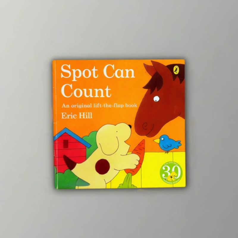 Spot Can Count by Eric Hill is a charming lift-the-flap board book where Spot the puppy helps young readers learn to count from 1 to 10. Set on a colourful farm, each page features a playful scene with hiding animals—lift the flap to discover them and tally as you go!
