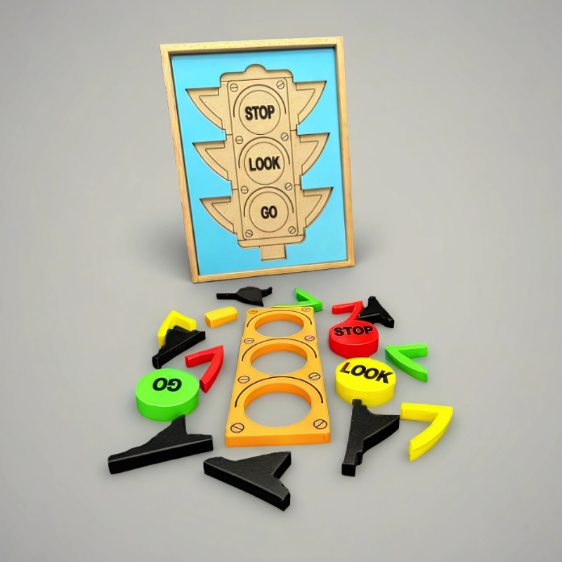 Stubby 3D Street Light puzzle is a 3D puzzle. A child can learn to recognise the meaning of different traffic lights – red, amber and green which mean stop, look and go respectively as it is imprinted on the blocks. The puzzle consists of brightly-coloured pieces painted with non-toxic colours.  Stubby 3D traffic light puzzle is an amusing way to teach young minds all about the importance of following traffic rules. It boosts problem-solving abilities, develop cognitive abilities, fine motor skills, hand-eye coordination and ignite the spark of curiosity.